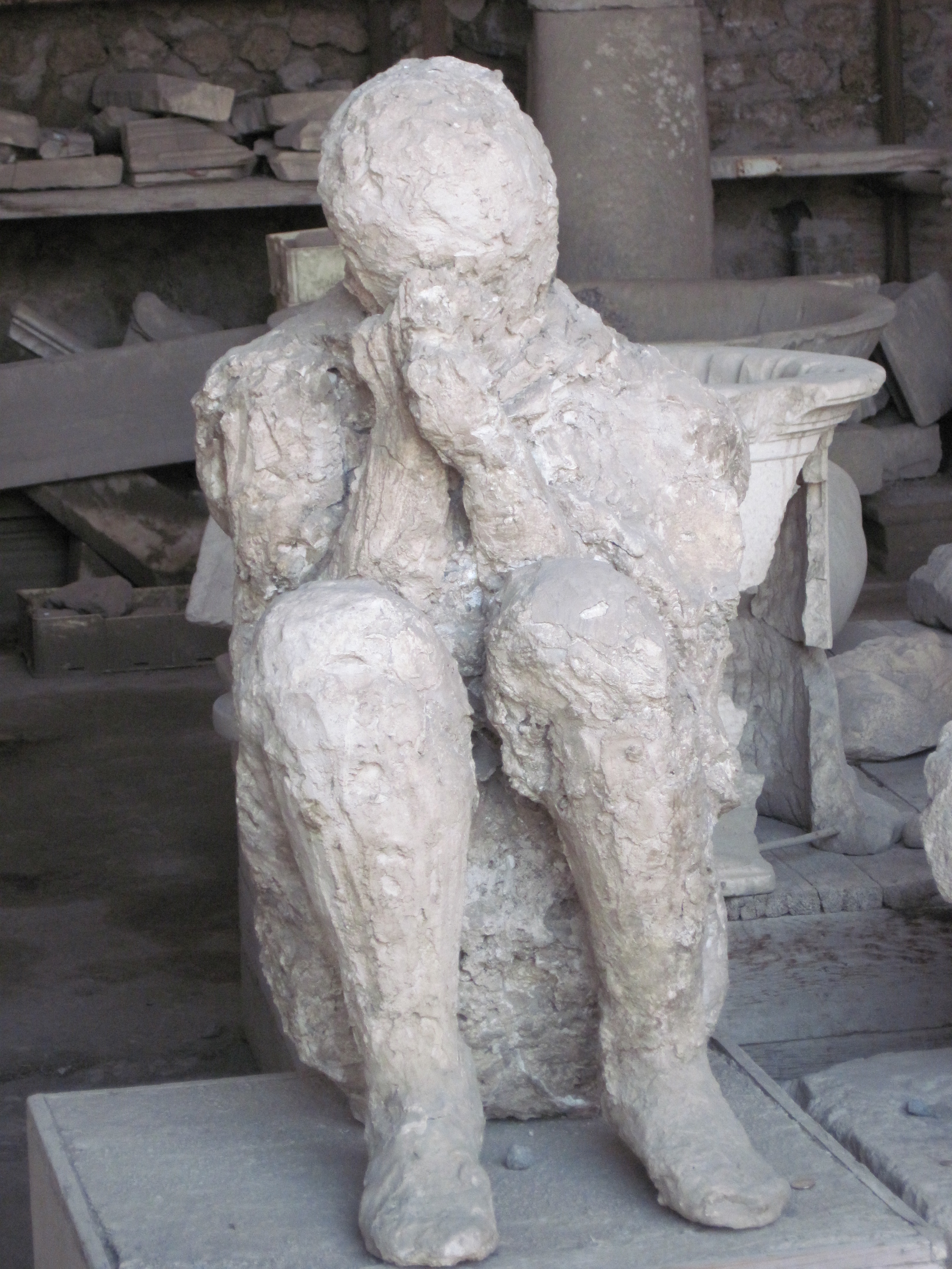 The above picture was taken on our trip to Pompeii. With all the devastation I wonder what this individual was thinking. Looks startling like the “The Thinker” by Rodin.