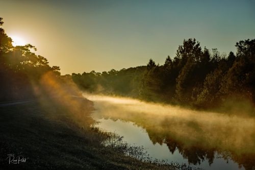 As the sun rises, a surreal morning haze on the river …..